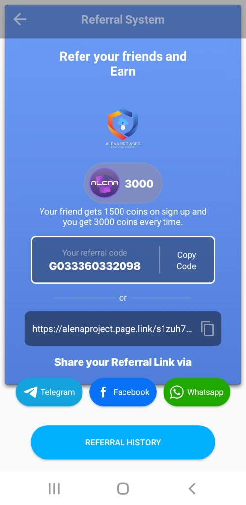 Gaskuy daftar dapet 3000ALENA selancar doang di apk browser nya imbalan poin ALENA ada mini game juga d browser nya, code bonus 👉G033360332098